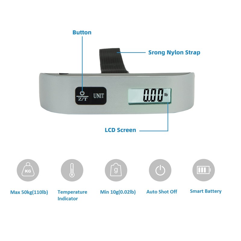 - Material: wear-resistant and strong ABS shell,High accuracy and stable load cell,stainless steel hook.Multi-purpose scale suitable for family and travel.Lightweight, portable and easy to use.