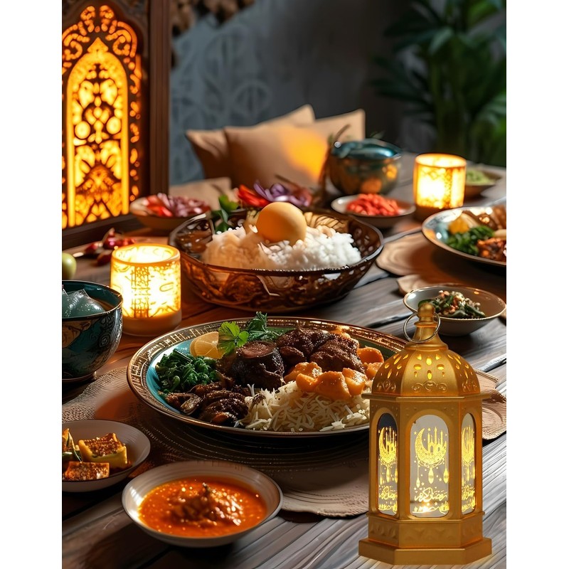 - High Quality: The Ramadan Kareem lights are made of high quality plastic and alloys material, durable and not easy to break. The decorative lanterns are equipped with bulbs inside, and each window has a delicate pattern, the bright light illuminates the pattern on the glass, which can create the atmosphere of Ramadan.