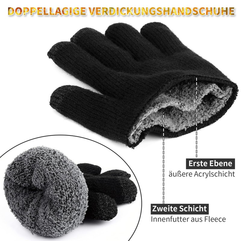 Hyinphon Gloves Men Women Touchscreen Knitted Gloves Flexible and Comfortable Soft Elastic Finger Gloves Suitable for Winter Running and Outdoor Activities, Black_Thickening