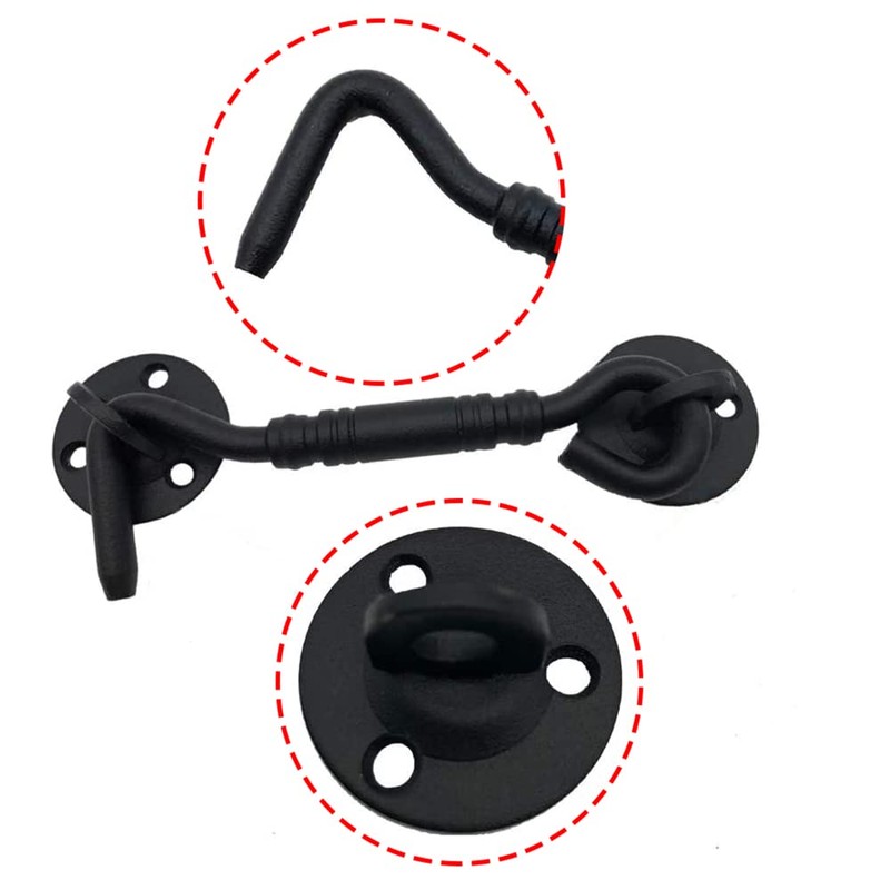- ☀【MULTI-FUNCTIONAL USE】: The gate latch can be used to lock windows, shutters, barns, sliding doors, double doors, gates, garages, sheds doors The gate hook latch can be used as a door stopper. Materials: Stainless steel, black coating, rust resistant, abrasion resistant, strong and long life