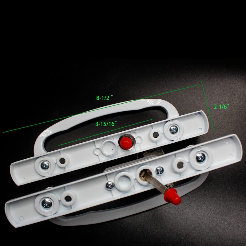 Hyneesun Patio Door Handle 3-15/16 Inch(10cm) Hole spacing(Right and Left Handed White Sliding Door Handle Set Mortise Style, keyed(Offset Position)