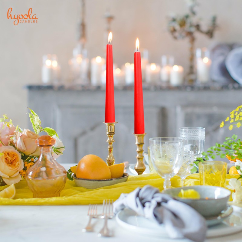 Need something to illuminate your decor at your special occasion? Look no further than our tall taper candles unscented by Hyoola. They exude a warm glow and a long-lasting flame.