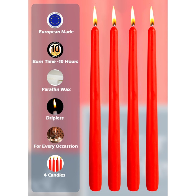 Hyoola Tall Taper Candles - 12 Inch Red Unscented Dripless Taper Candles - 10 Hour Burn Time - 4 Pack