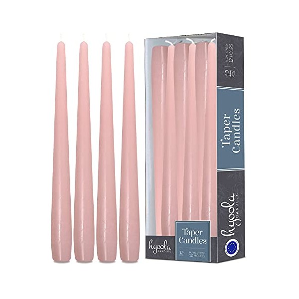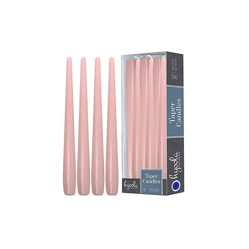 Hyoola Tall Taper Candles - 14 Inch Light Pink Unscented Dripless Taper Candles - 12 Hour Burn Time - 12 Pack