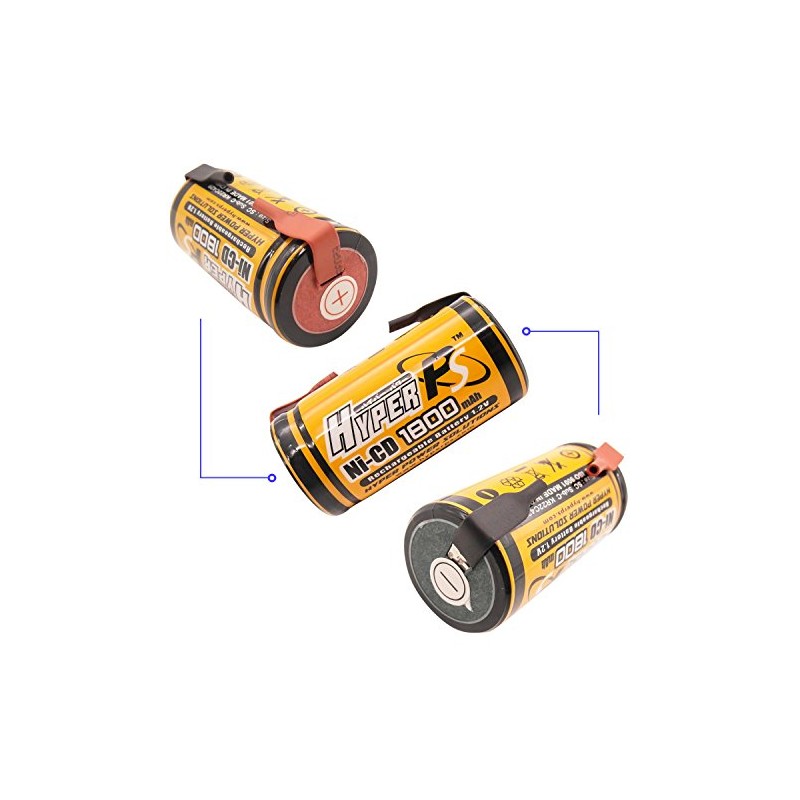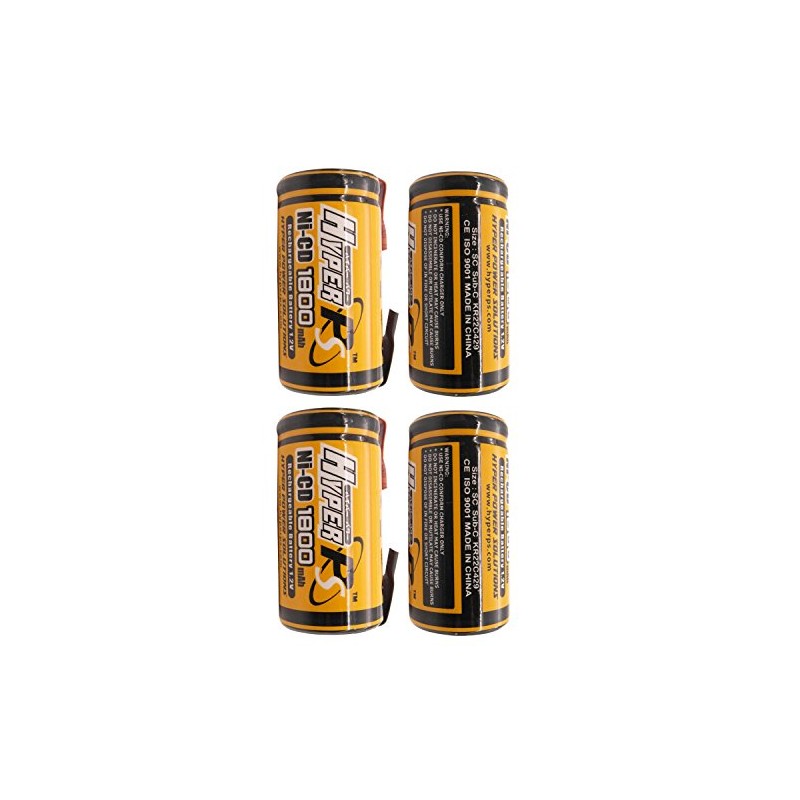 HyperPS 1.2V Sub C SubC 1800mAh NiCd Ni-Cd Rechargeable Battery for Power Tools Battery Pack (w/Tabs) (4 Pack)