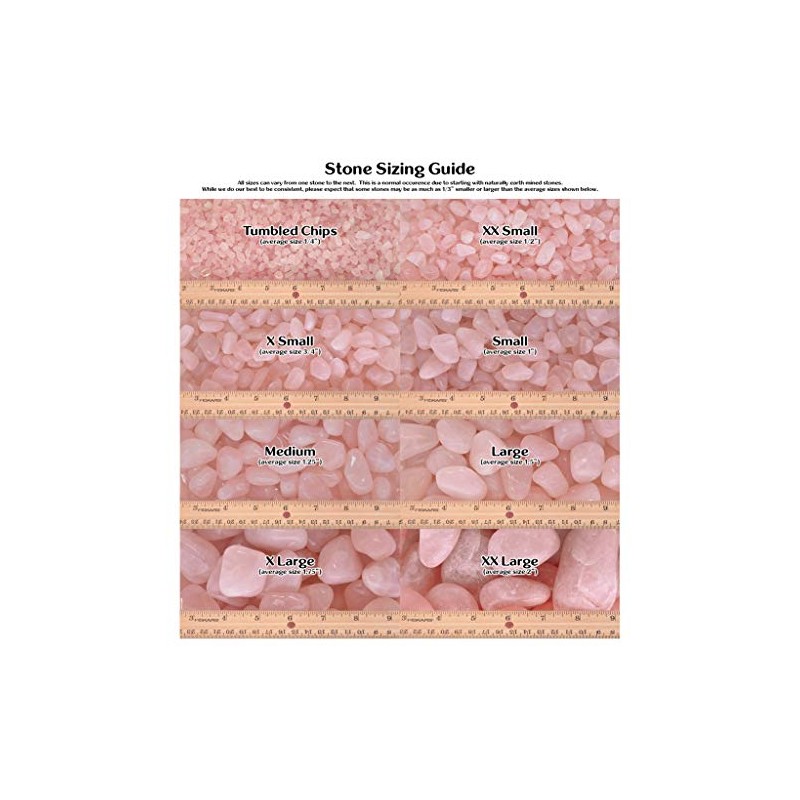 - Average Size Per Stone: (Chips: ¼"),(XXSm: ¼ - ¾"),(XSm: ½ - 1"),(Sm: ¾ - 1 ¼"),( Med: 1 - 1½),(Lg: 1 ¼ - 1¾"),(XLg: 1½ - 2"),(XXLg: 1¾ - 2½")
