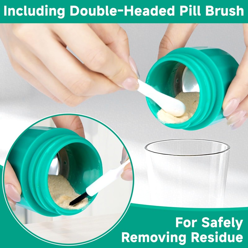 - 【Premium Stainless Steel Grinding Head】Our pill crusher uses a high-quality stainless steel grinding head, and the bottle cap fits tightly with the bottle body, which is suitable for pills of various sizes, ensuring that there is no plastic particle contamination in the pill powder, ensuring the safe use of medicines.
