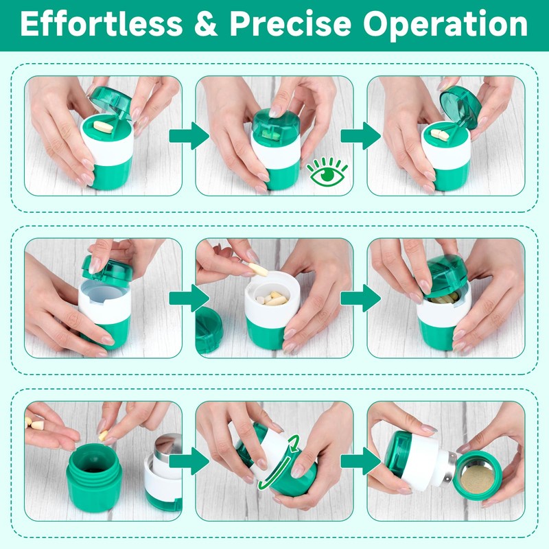 - 【Effortless & Precise Operation】The efficient rotation mechanism can easily grind pills into fine powder, and the sharp, rust-proof stainless steel blade and V-shaped bracket ensure precise and smooth cutting for precise dosage control-ideal for elderly users and daily medication management.