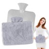 Hysagtek Hot Water Bottle with Cover Fluffy 1.5 L Hot Water Bottle with Kangaroo Pocket for Hands, Grey Bed Bottle, Hand Warmer for Children Adults