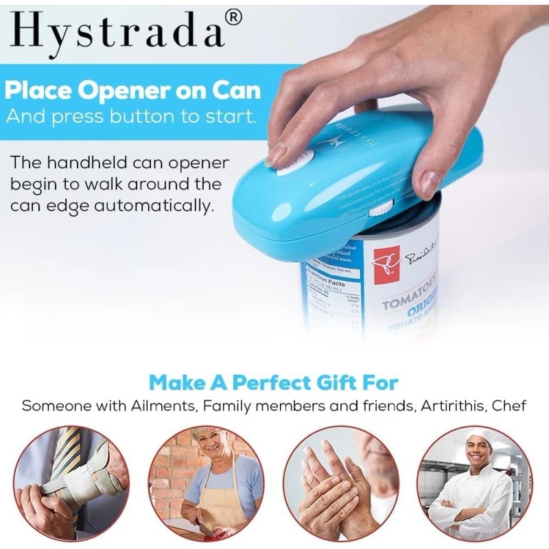 Hystrada Electric Can Opener - No Sharp Edge Handheld - Battery Operated - Easy One-Touch