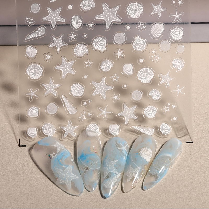 - Vibrant Summer Beach Design: 2 sheets of 5D embossed nail stickers feature starfish, seashells, and dolphins, crafting trendy ocean-themed manis for summer vacations, beach parties, or daily wear. The 5D texture brings sea charms for nails to life, infusing beach nails and ocean nails with vivid coastal energy.