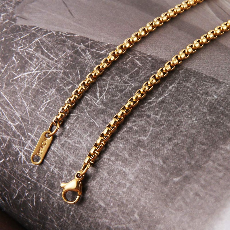 HZMAN 3mm Rolo Chain for Men Women Gold Stainless Steel Men's Chain Necklace Round Box Link Chain Necklace 16-30 Inch (30in)