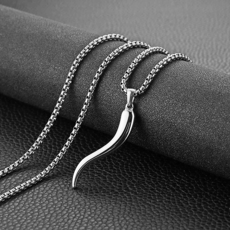 HZMAN Italian Horn Necklace for Men Women High Polished Stainless Steel Cornicello Pendant Protection Jewelry Gift, Stainless Steel, No Gemstone