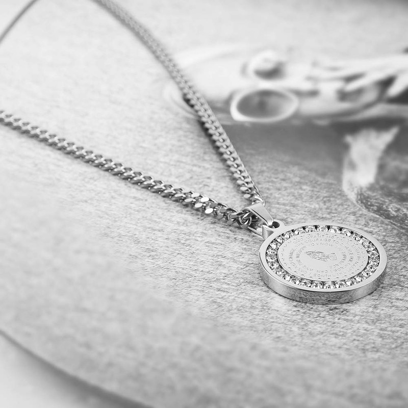 HZMAN Stainless Steel Bible Verse Prayer Necklace for Men Women Religious Christian Praying Hands Coin Medal Pendant Jewelry Gift (Silve-CZ)