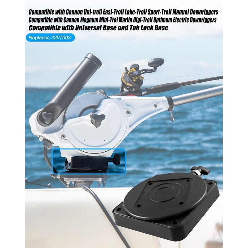 - Compatibility: Compatible with Cannon Uni-troll Easi-Troll Lake-Troll Sport-Troll manual downriggers, Compatible with Cannon Magnum Mini-Trol Marlin Digi-Troll Optimum electric downriggers, Compatible with universal base and Tab lock base, Replaces 2207003