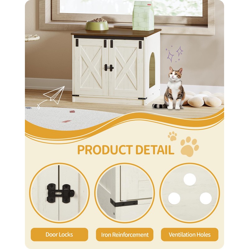 - Multi Purpose Pet Furniture:It is not only a cat litter box enclosure, but also can be used as a cat house or side table next to the sofa. The rustic style and unique barn door design easily fits into most home decor styles