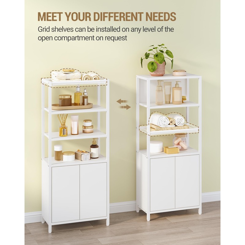 Hzuaneri Storage Bathroom Cabinet, Bathroom Floor Cabinet with Doors and Open Shelf, Small Cabinets with Ventilated Metal Grid & Adjustable Shelf, Freestanding Storage Cabinets, White BC42903W
