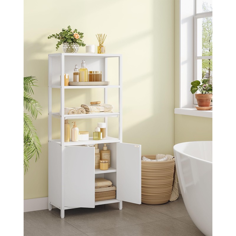 - 【Simple & Versatile】This bathroom shelf impresses with its simple lines and white/ black color. Cabinet adapts effortlessly to different furnishing styles and integrates harmoniously into corners of the bathroom, kitchen or living room - good for storing everything from toiletries to fresh fruit and vegetables, plants and books
