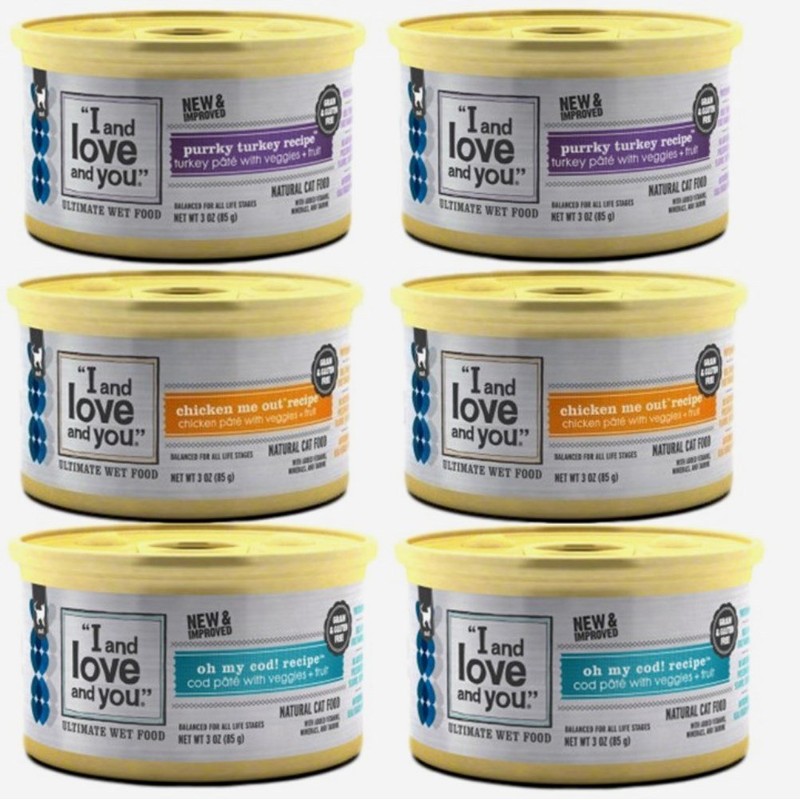 I and love and you Grain Free Cat Food 3 Flavor 6 Can Bundle: (2) Purrky Turkey, (2) Chicken Me Out, and (2) Oh My Cod!, 3 Ounces Each