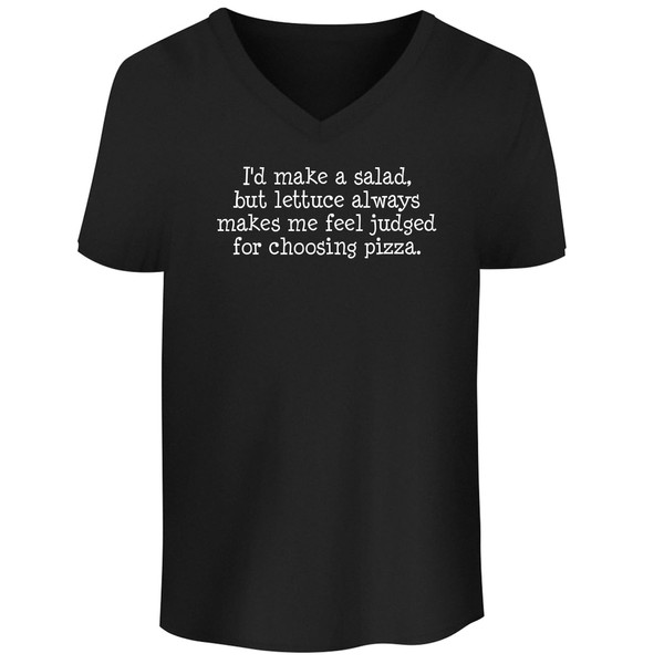 I’d Make a Salad, but Lettuce Always Makes me Feel Judged for Choosing Pizza. - Men's Soft & Comfortable V-Neck T-Shirt CP05 Black