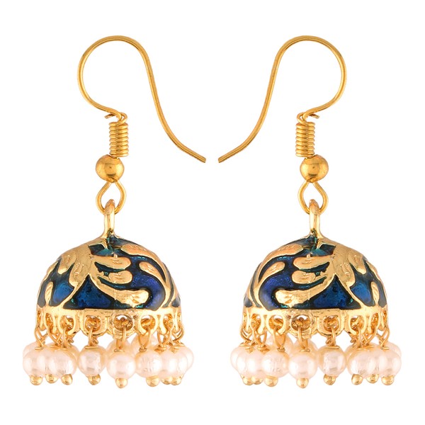 I Jewels 18K Gold Plated Traditional Handcrafted Meena Work Jhumka Earring Glided With Pearls For Women