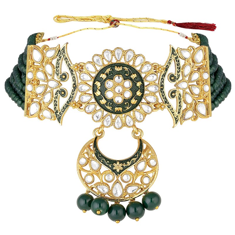 I Jewels Gold Plated Indian Wedding Bollywood Kundan Studded Pearl Choker Necklace Jewellery Set For Women (ML291G)