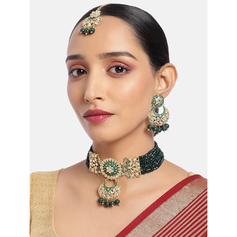 - DIMENSIONS: Necklace Length - 1 Inch X Width - 8.8 Cm, Earring Height - 6.4 Cm X Width - 3.6 Cm, Maang Tikka Length - 14.3 Cm X Width - 3.6 Cm, Weight - 98 Gms