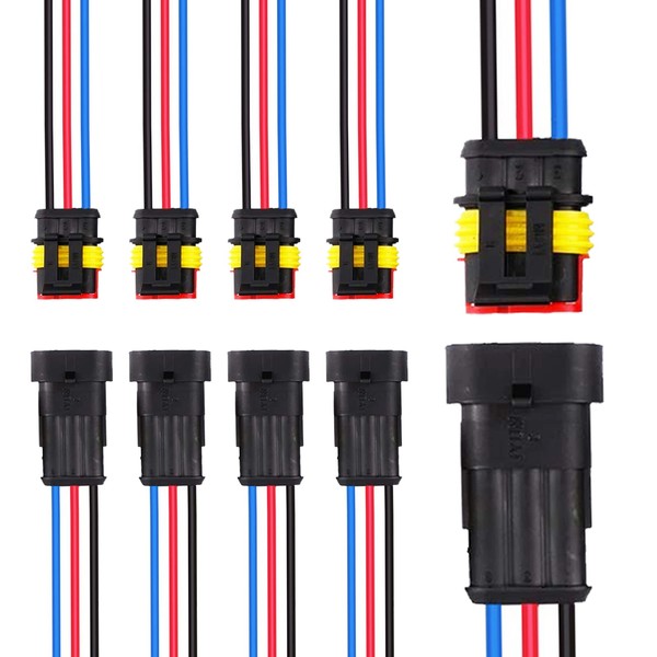 I Little Bamboo - Conectores eléctricos impermeables de 3 pines, 16 AWG, macho y hembra de 16 AWG, kit de enchufe de mazo de cables adecuado para coche, camión, barco, motocicleta, triciclo, caravana, marino-paquete de 5