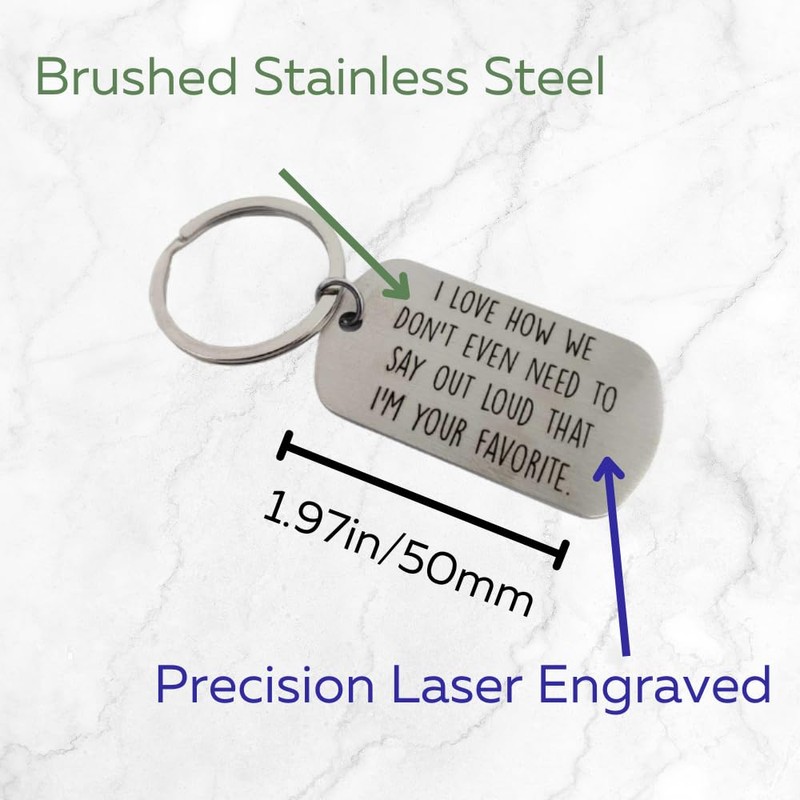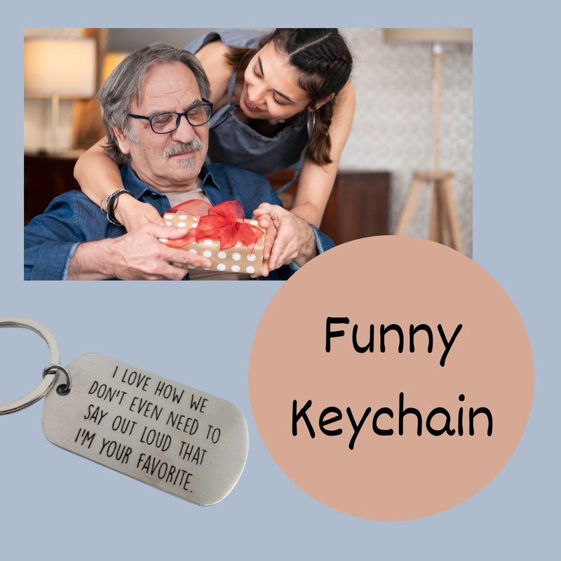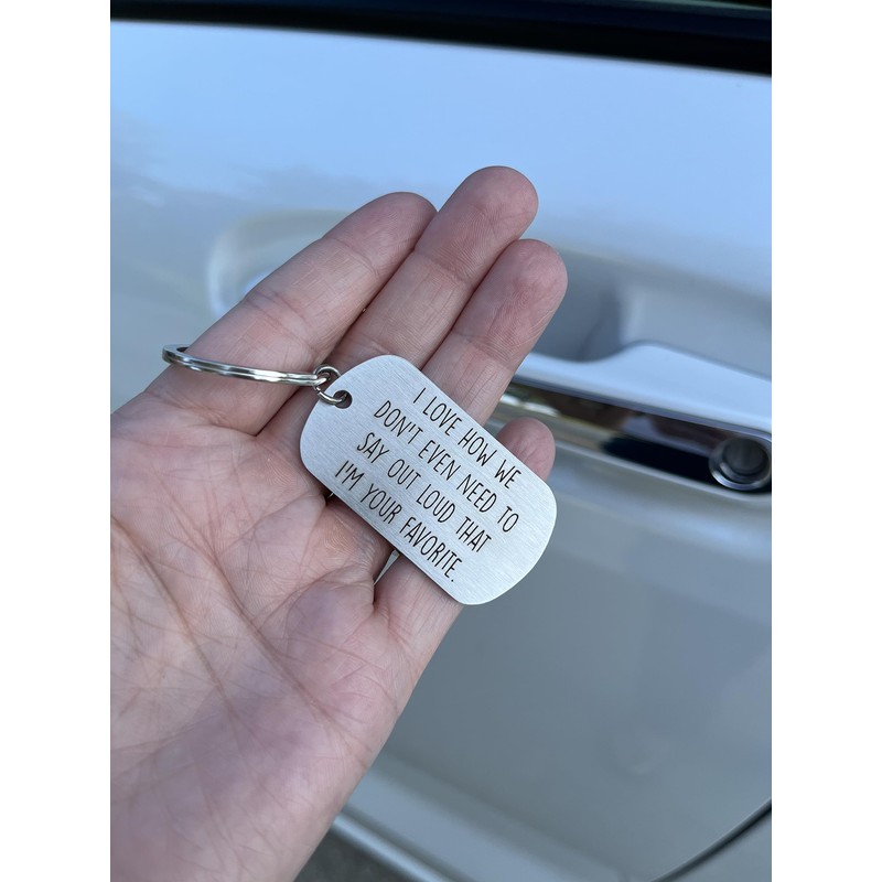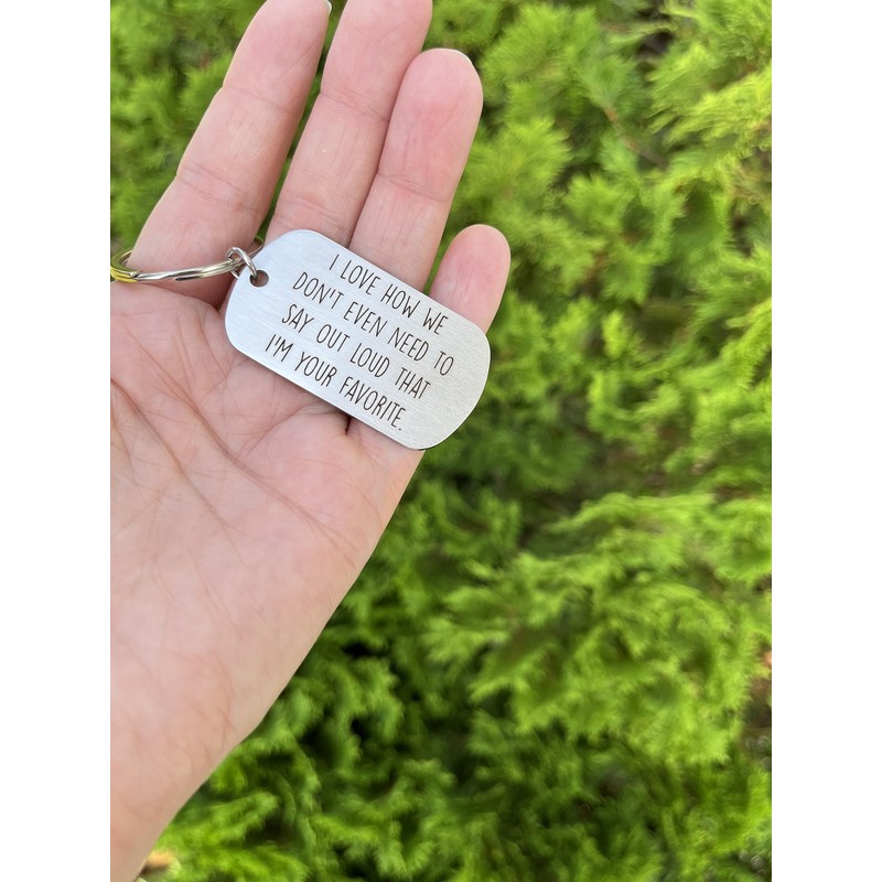 - Favorite Person Keychain - a funny gift for various connections. Engraved with "I love how we don't even need to say out loud that I'm your favorite," it's an ideal choice for favorite aunt gifts. From coworkers to family, this keychain is a versatile gift for loved ones. Whether it's from your favorite child to dad or a coworker, it adds a touch of humor to the occasion. Celebrate the unique bond you share with this charming and funny keychain. Makes great stocking stuffer for Dad!