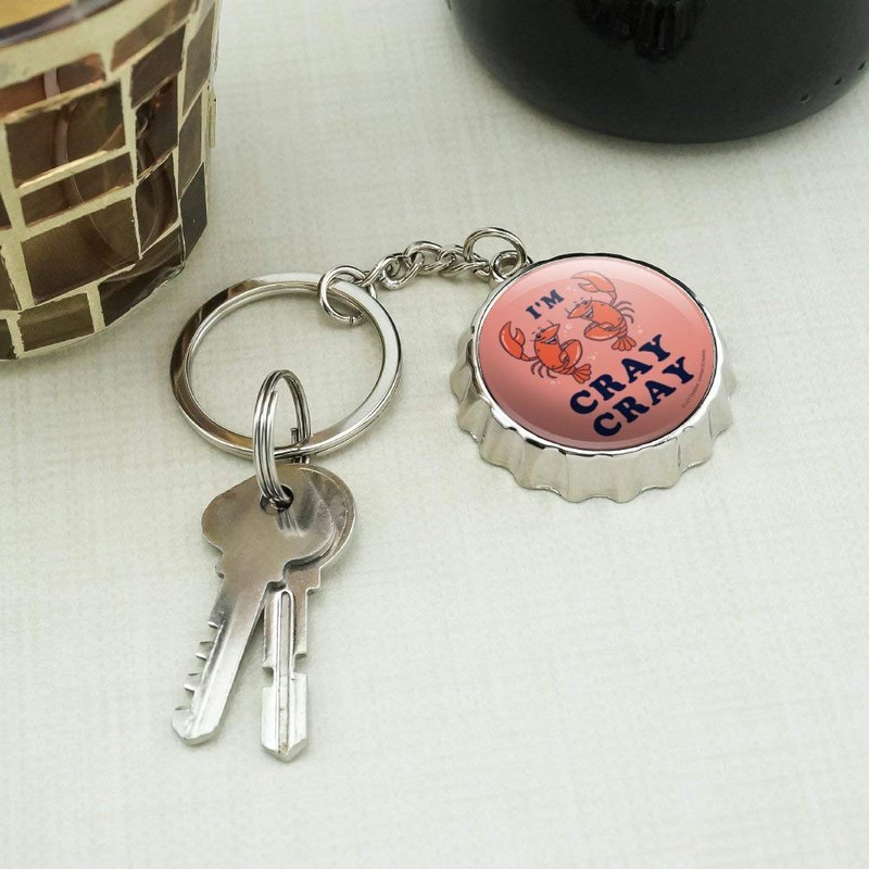 I'm Cray Cray Crazy Crayfish Funny Humor Keychain Chrome Plated Metal Pop Cap Bottle Opener