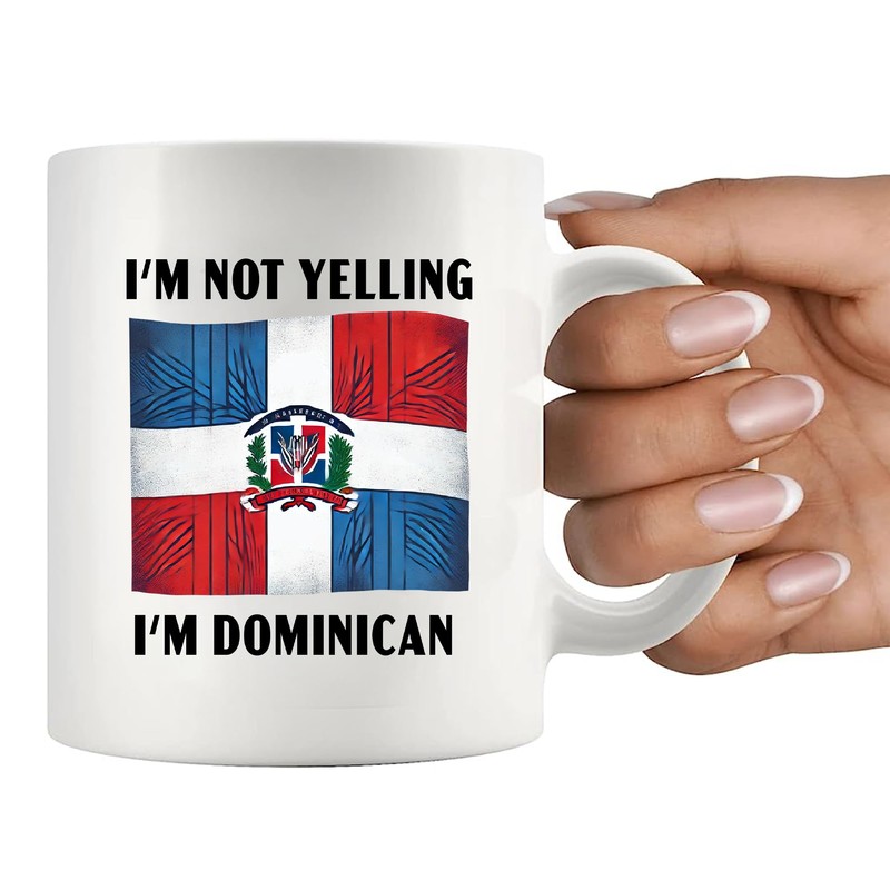 I'm Not Yelling I'm Dominican Funny Dominican Gifts For Family Friends New Citizenship Dominican Flag Novelty Drinkware Ceramic Mug 11 oz White
