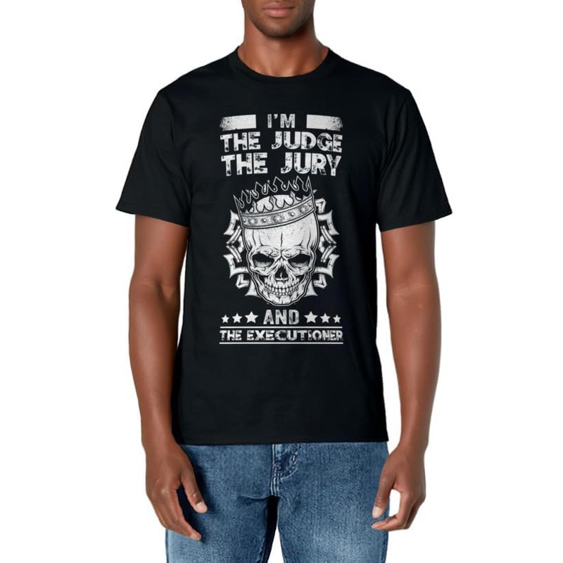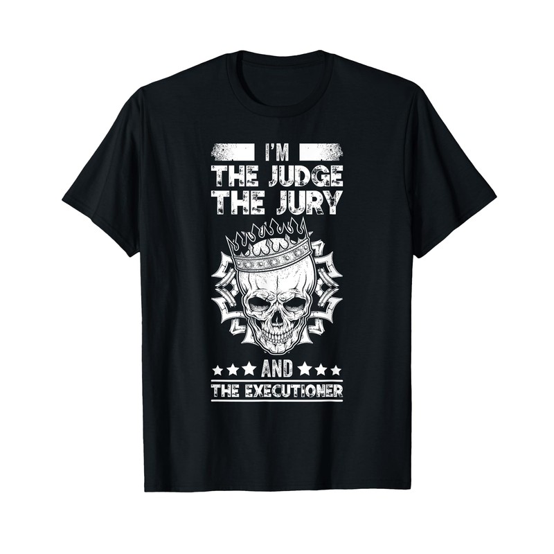 • I'm The Judge Jury And The Executioner Skull Crown Shirt. Cute funny humor gift top tshirts. The perfect apparel wear gifts. Great for the whole family.