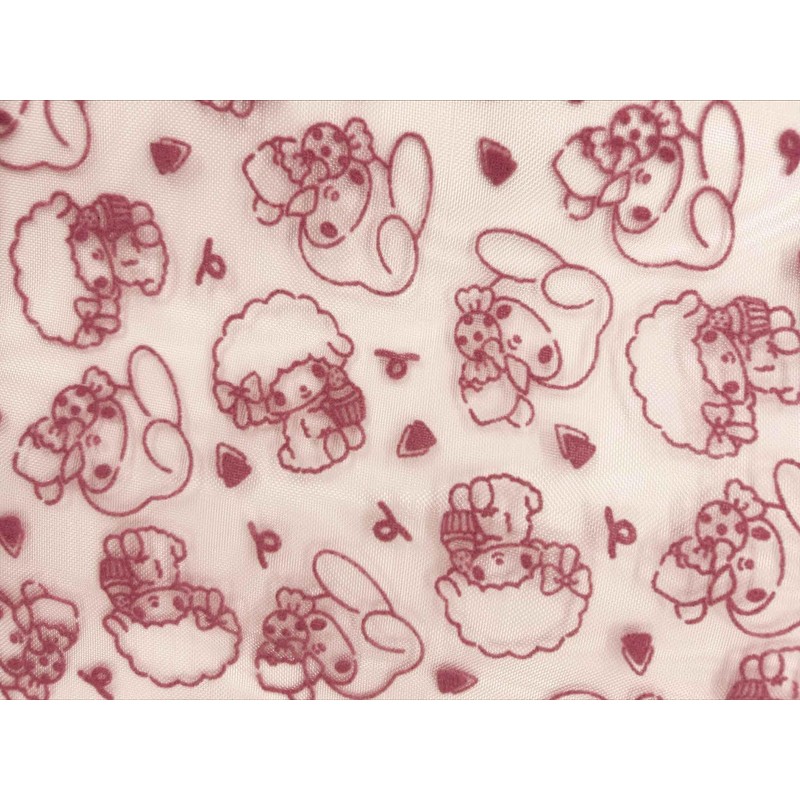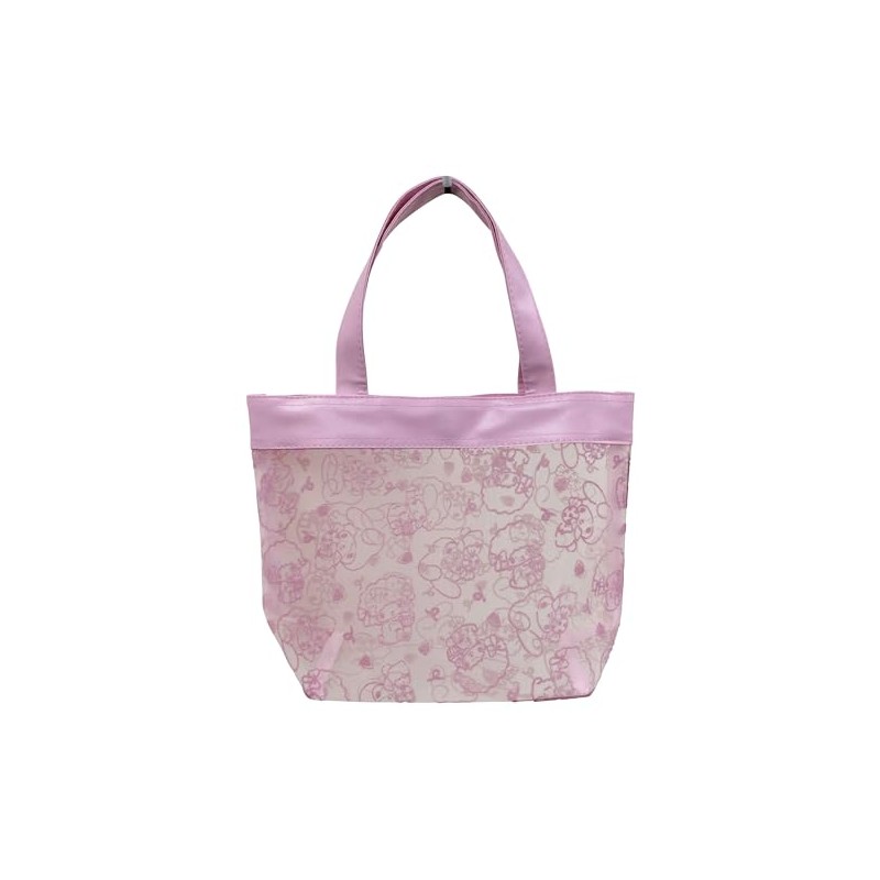 - Sanrio Characters Tulle Flocked Mini Tote Flocking pattern is made of sheer mesh fabric on both sides