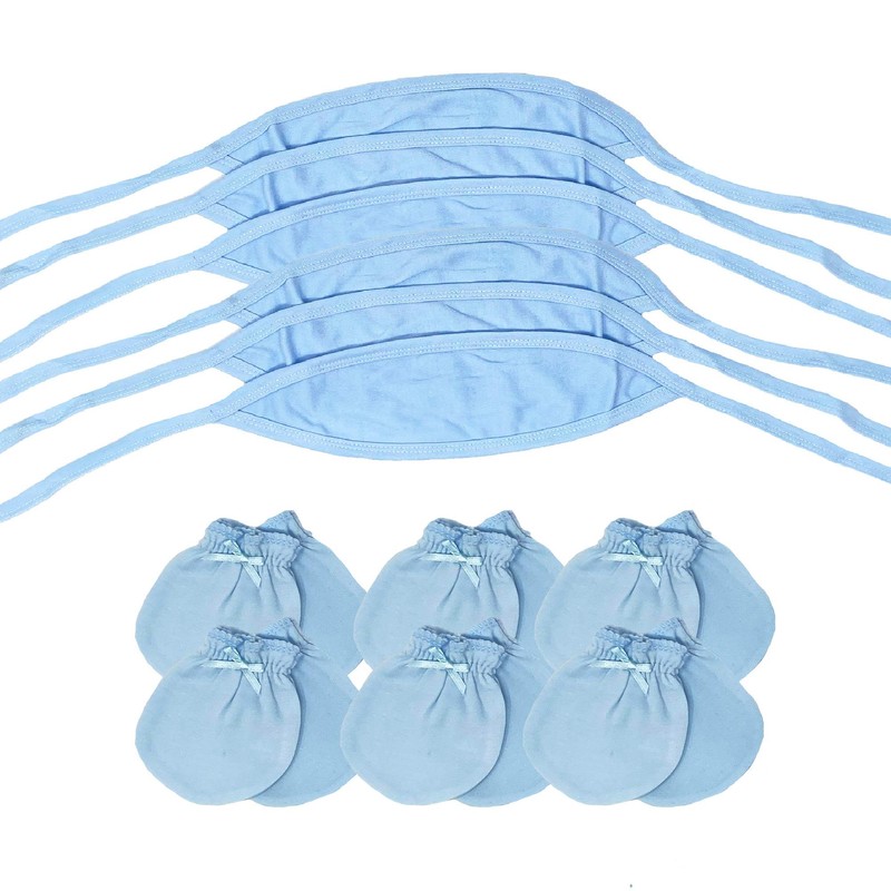 I&S Newborn Baby Gift Set 100% Cotton Belly Button Covers and Mittens for Boys Girls (12 Pack - Blues)