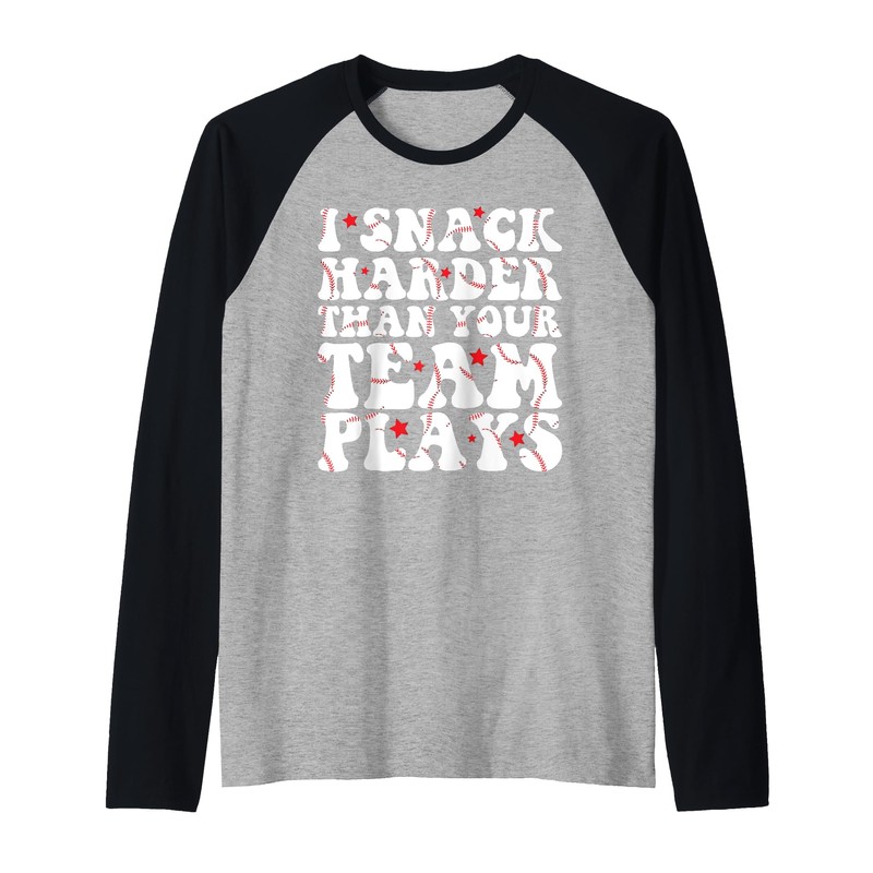 I Snack Harder Than Your Team Plays Funny Softball Baseball Raglan Baseball Tee