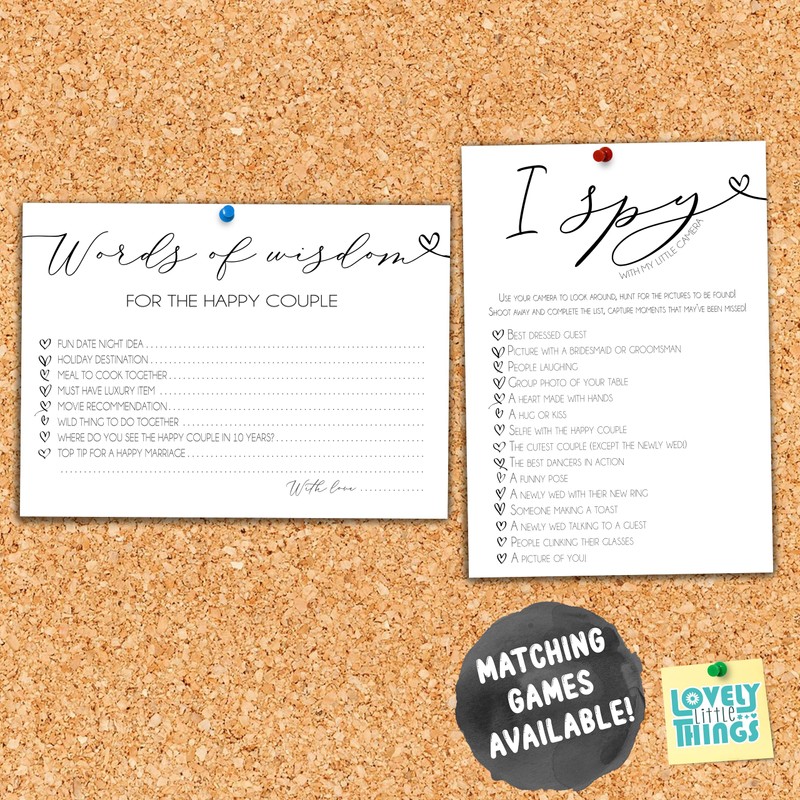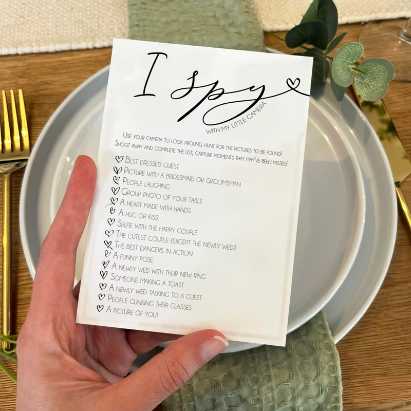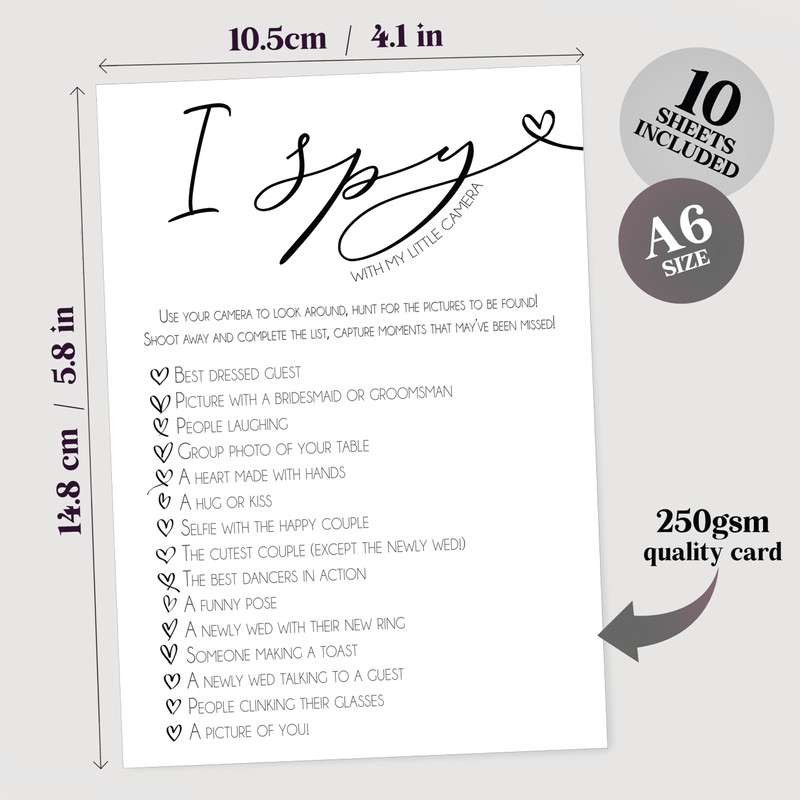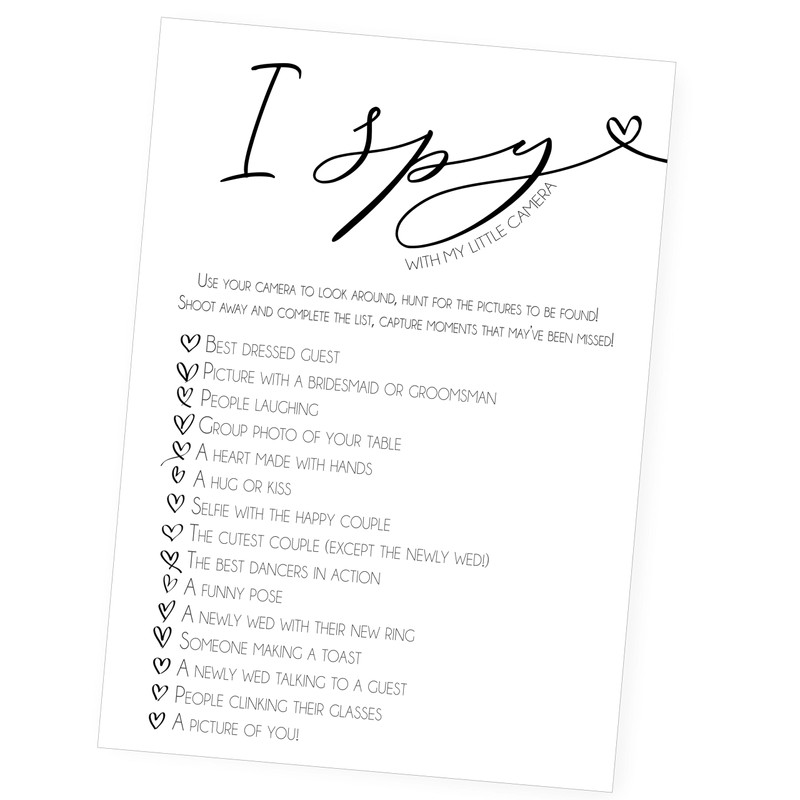 I Spy Camera Selfie Game - 10 Pack - Wedding Cards - Minimalist