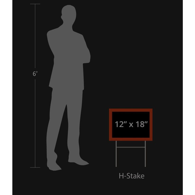 - 12x18 inch signs with Included Metal Stakes for easy install. The stakes simply slide into the ground and also into the flutes of the sign.