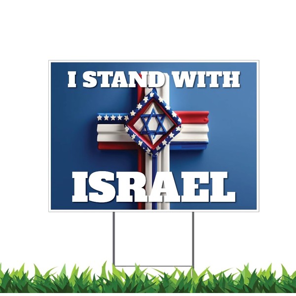 I Stand With Israel Crucifix Star Of David Christian FIVE PACK (5) 12x18" Horizontal Yard Signs (Outdoor, Weatherproof Corrugated Plastic) Metal Stake Included, by M&R