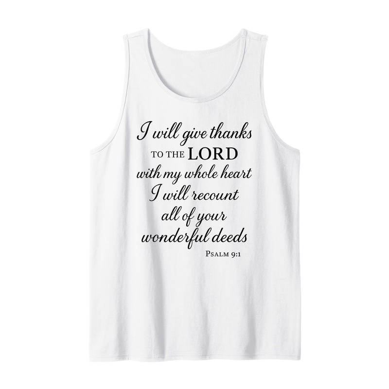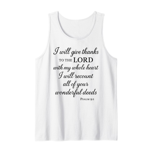I Will Give Thanks to The Lord Psalm 9:1 Christian Bible God Tank Top