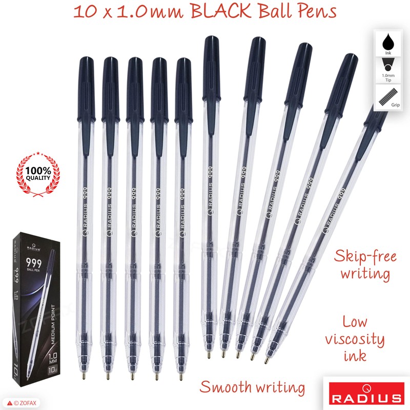 i999 Ballpoint Pens, BLACK, Medium Point (1.0mm), Pack of 10, Smooth Writing, Biro Ball Pens, Ideal for School Office Home Use, iVAIDEX Black Ball Pen