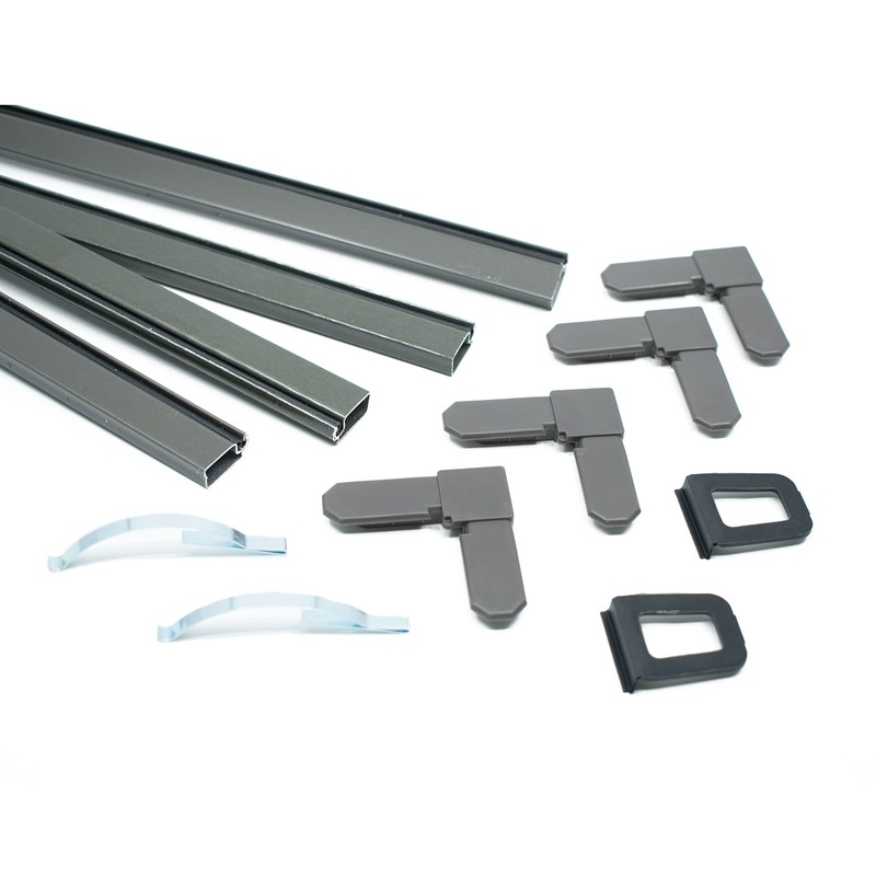 • Kit includes: aluminum frames with vinyl spline, frame corners, pull tabs, corner springs