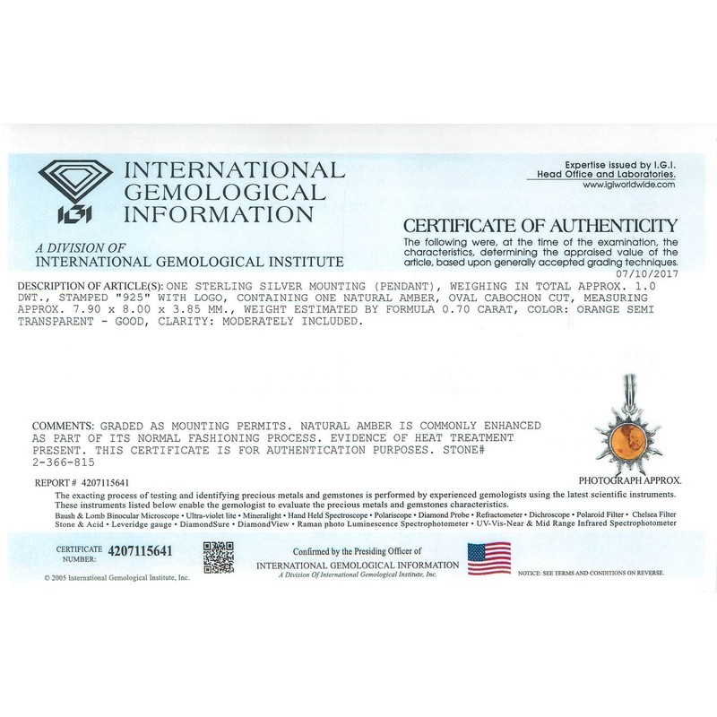 Ian and Valeri Co. Amber Sterling Silver Small Sun Pendant
