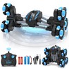 - [ 4WD ALL-TERRAIN & ANTI-INTERFERENCE ] This deformable stunt car can navigate smoothly across various terrains such as grass, rock, road, and sand. Its 2.4 GHz anti-interference remote system enables kids to enjoy solo and multiplayer racing games with smooth and precise control, without any interference. It easily overcomes obstacles, providing endless fun for kids while enhancing their hand-eye coordination and fostering social skills