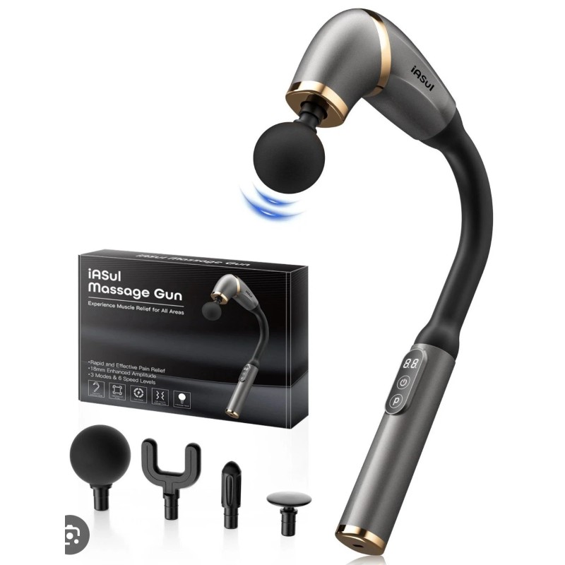 iAsul NEW! iASul Massage Gun Extended Handle Back Massager 4 Heads, 3 Modes & 6 Speeds