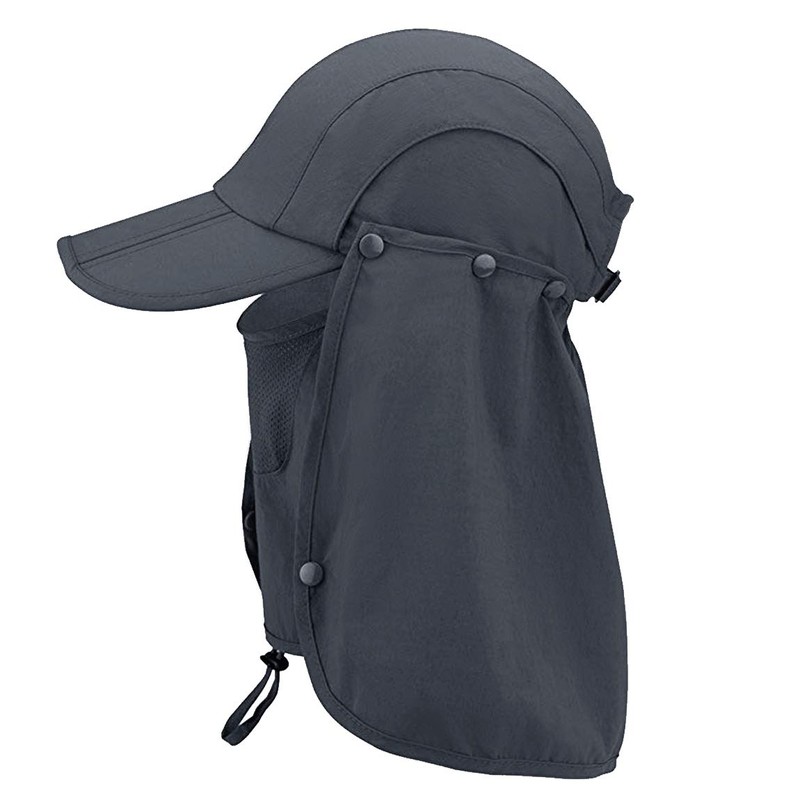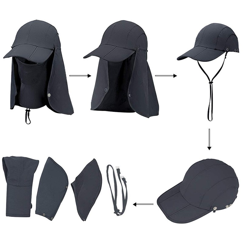 iBasingo アウトドア UVカット 帽子 3Way 360度UVカット 日除け 折りたたみ可能 紫外線対策 花粉対策 取り外し可能 フェイスカバー スポーツ 登山 農作業 ガーデニング キャップ ランニング 釣り メンズレディース兼用 ダークグレー BVH19