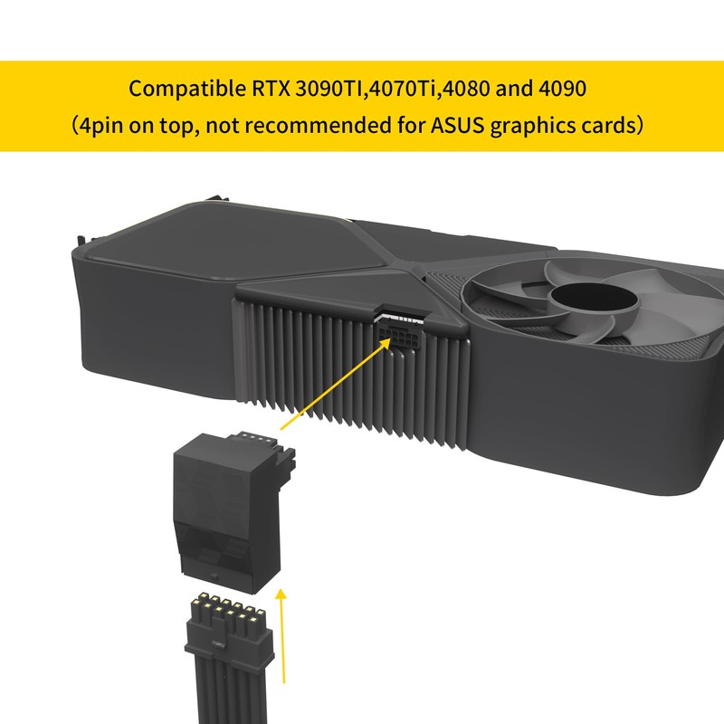 - 【Broad compatibility】This PCIE 5.0 GPU power cable connector Type A is universally compatible with various graphics cards such as Nvida, MSI, Gigabyte, Zotac, PNY, and more. It is recommended to route down, it accommodates a diverse range of configurations, making it a versatile accessory for your gaming setup. Upgrade your gaming gear with our 4090 GPU Cable and enjoy an unrivaled gaming experience.Note, please confirm your snap direction before purchase.