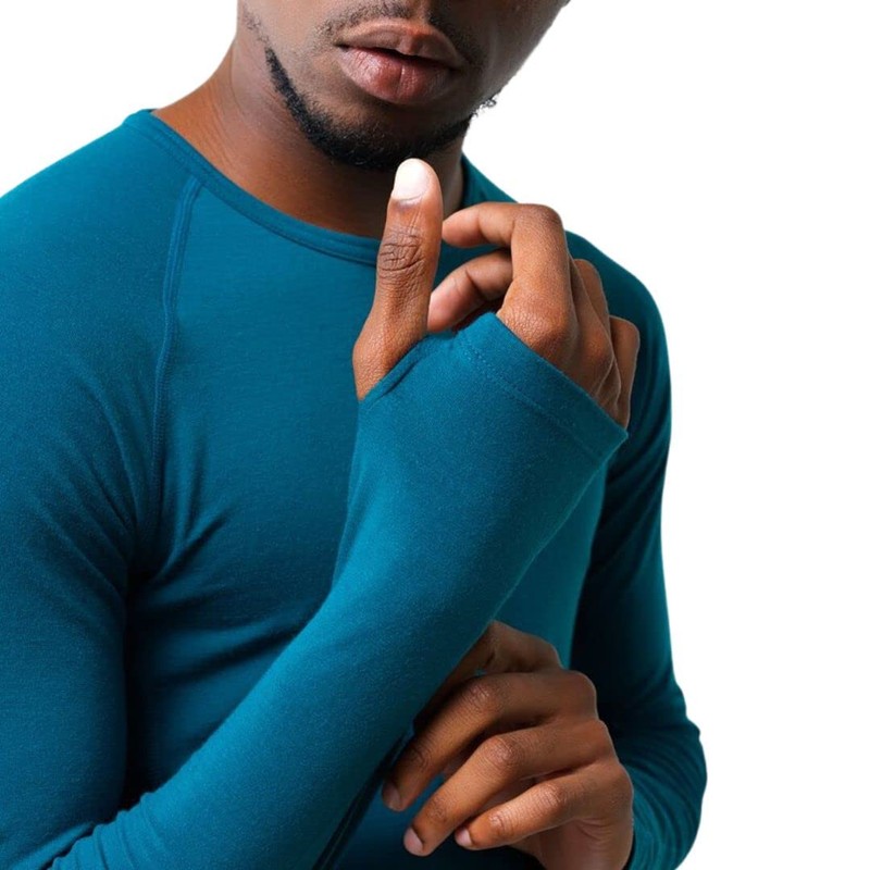 - MERINO WOOL: Made up of 100% merino wool, this base layer essential is thermoregulating, anti-itch, and odor resistant. Maintain that dry feel when this material wicks away moisture
