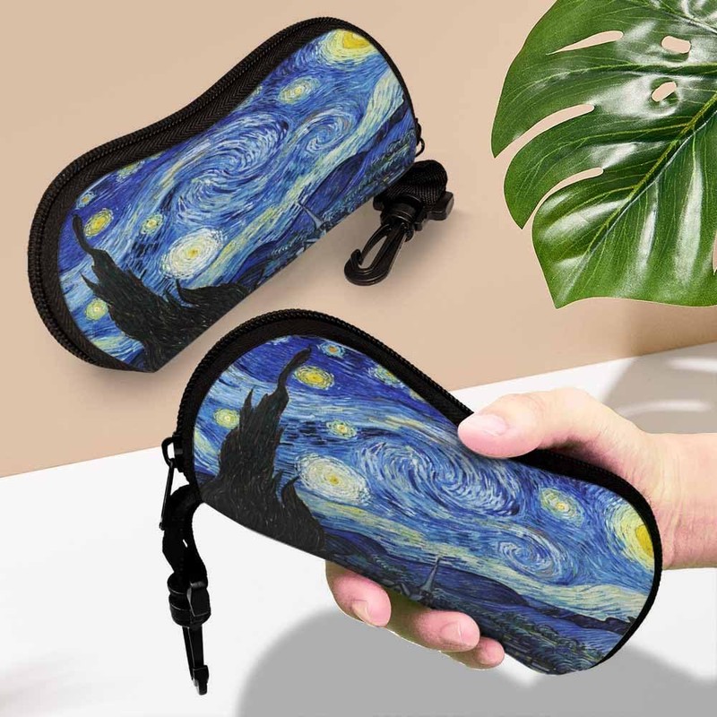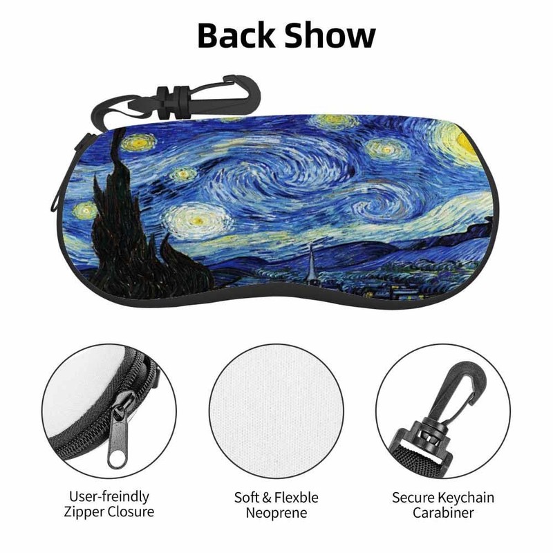 IBILIU Eyeglasses Case Van Gogh Starry Night Blue Ultra Light Neoprene Sunglasses Case With Belt Clip,Soft Reading Glasses Case For Women Men