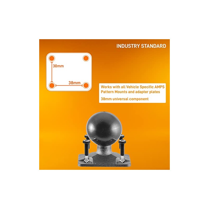 - FEATURES: a 30mm x 38mm industry-standard 4 hole pattern (=AMPS) that works with all industry-standard AMPS adapter plates and vehicle-specific mounts.