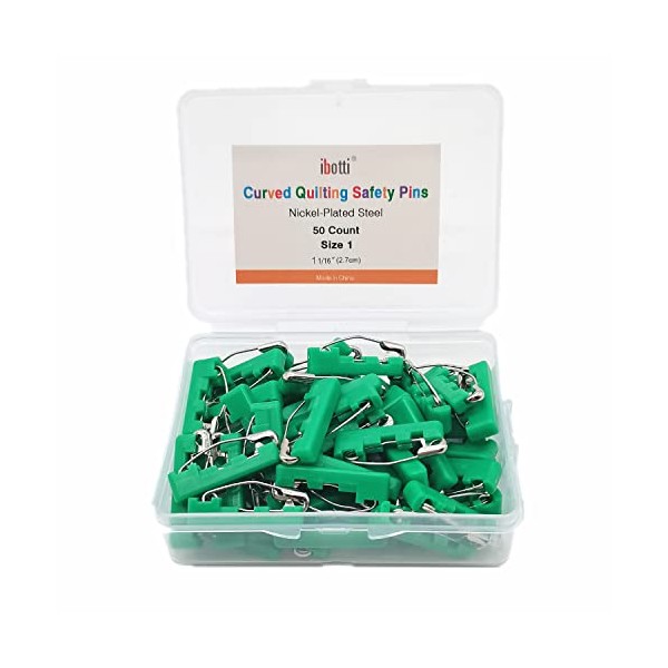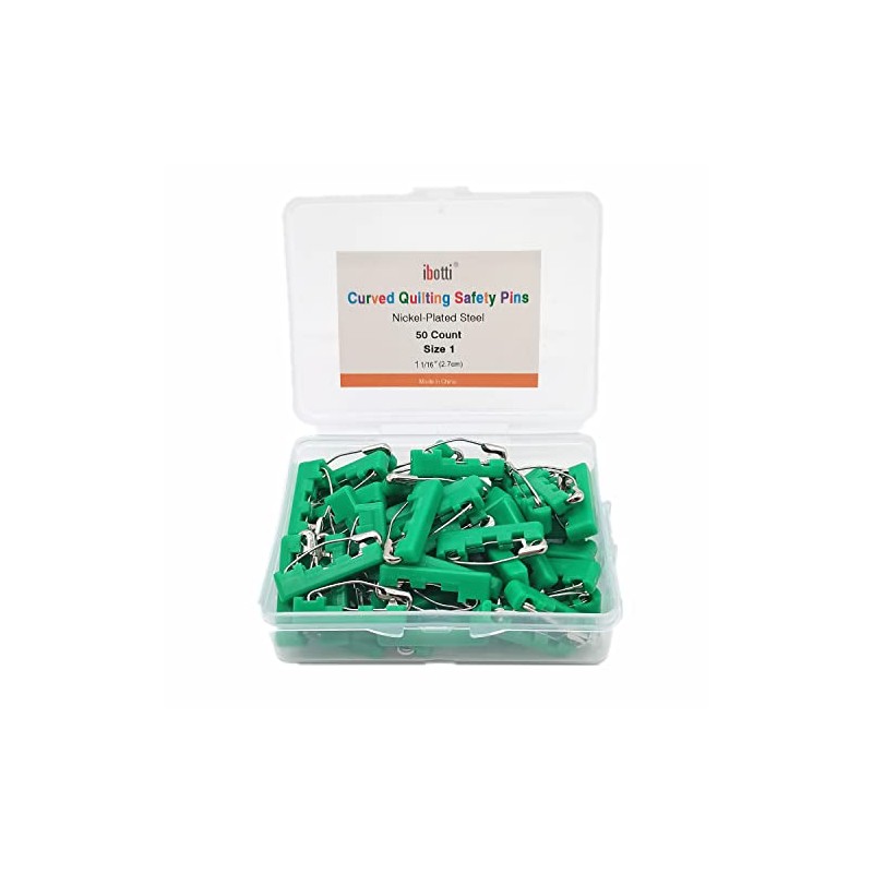 ibotti Curved Safety Pins with Grip Covers, Basting Pins for Quilting, Size 1, 50-Count, Green